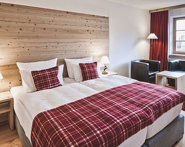 Die Einrichtung mit hochwertigem Lärchenholz, Loden und natürlichen Materialien versprüht viel alpenländische Gemütlichkeit und Charme, in der Sie ganz wunderbar entspannen und neue Energie für den Alltag tanken können. Hochwertige Boxspringbetten sorgen für beste Schlafqualität.