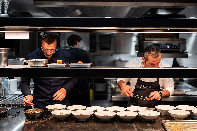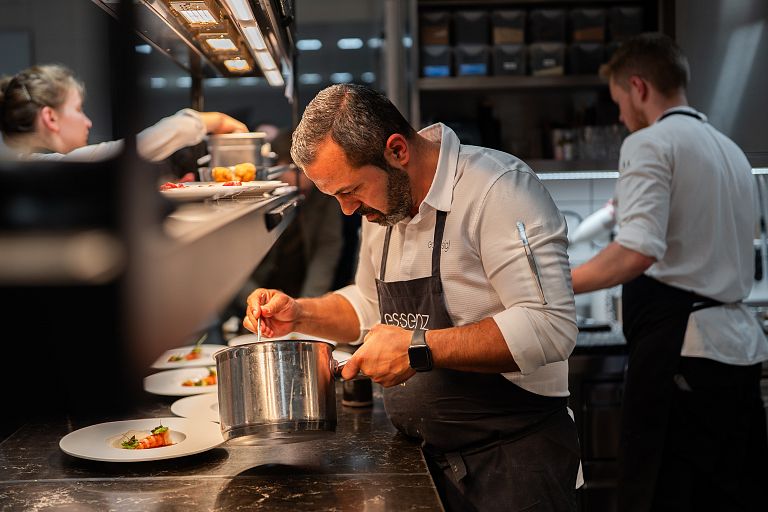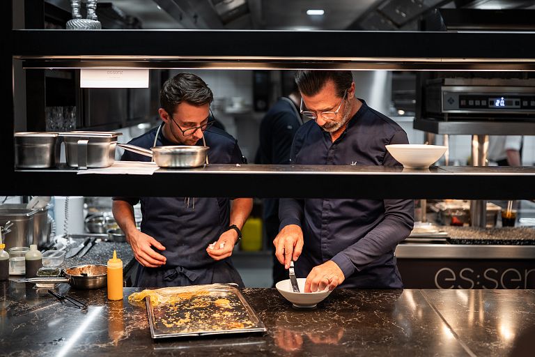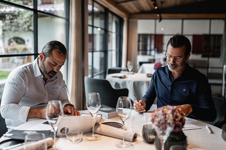 For three years now, Edip Sigl has been inviting renowned top chefs to es:senz to present guests with exclusive culinary fireworks. With Andreas Caminada, the multi-award-winning top chef from Switzerland, another culinary visionary has now met Sigl. Both are united by a passion for perfection, product quality and exceptional flavor compositions.