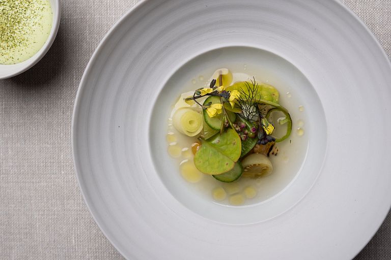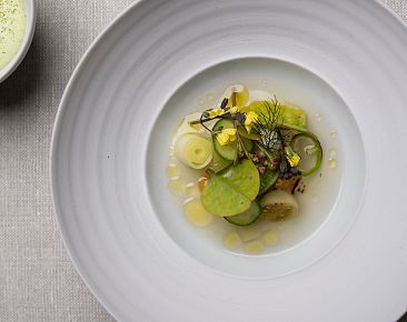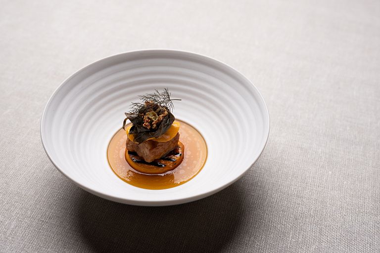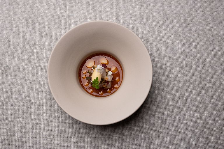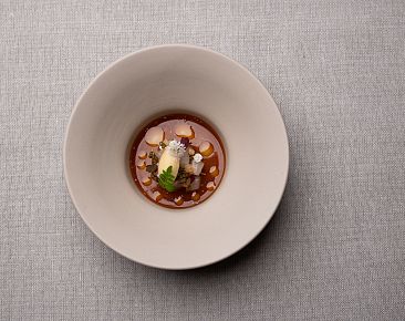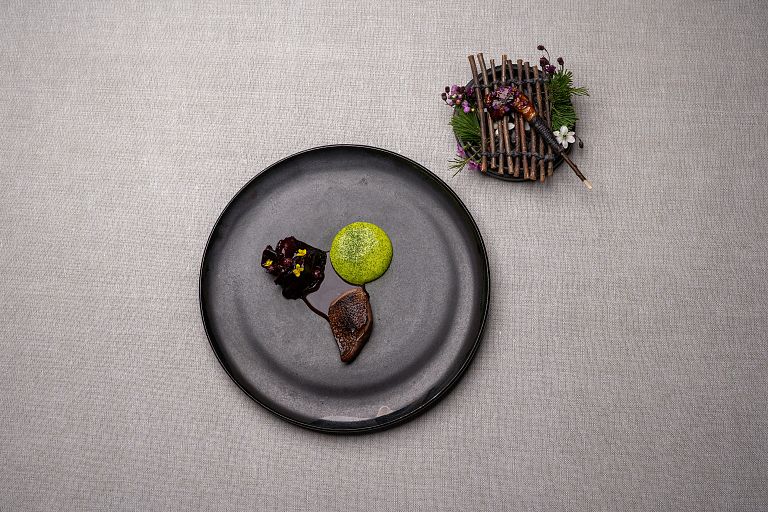 "I don't follow trends in my kitchen. My cuisine is like the little black dress - there's nothing to hide," says Juan Amador. The German chef with Spanish roots has been running the three-star restaurant "Amador" in Vienna since 2016. Amador's recipes are based on the classic cuisine of Catalonia, France and the Basque Country. Amador also enchanted the guests at the 4 Hands Dinner in Grassau with this signature style.