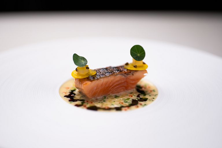 The popular gourmet series continued with Sven Elverfeld on Monday, May 8, 2023. Elverfeld's career really took off at the Ritz-Carlton in 1998. Before opening the Aqua restaurant at The Ritz-Carlton Wolfsburg, Elverfeld managed the gourmet restaurant La Baie at The Ritz-Carlton in Dubai. Aqua was awarded its first star by the Michelin Guide in 2002, its second in 2006 and has held three Michelin stars since 2009. Aqua is now one of the ten best trendy restaurants in Germany and Sven Elverfeld is one of the best chefs in the country. The culinary fireworks delighted the guests on this unique evening, during which four hands and five stars presented magnificent compositions on the plates.