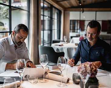 A special evening at Resort Das Achental and throughout Chiemgau: at the 4 Hands Dinner in the es:senz gourmet restaurant, two 3-star chefs, Edip Sigl and Andreas Caminada, stood together at the stove and created a phenomenal 9-course menu.