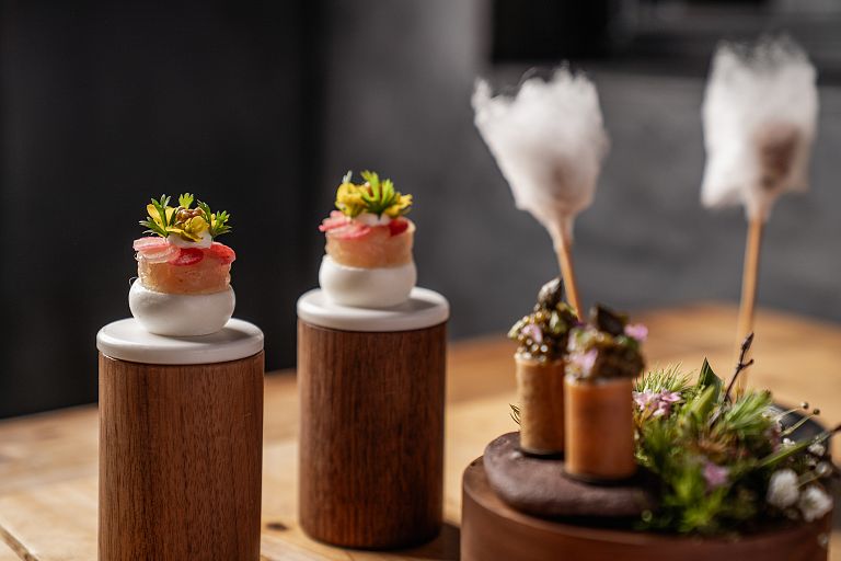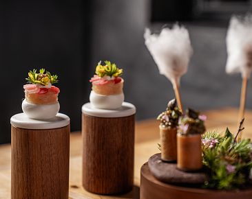 - 8-course menu "Around the world" excl. wine accompaniment in the gourmet restaurant es:senz